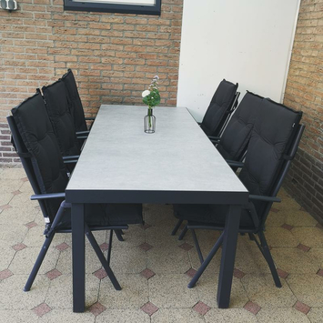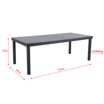 De Tafel San Remo 210 x 90 is een stijlvolle eettafel voor in de tuin. Deze eettafel is gemaakt van aluminium en is antraciet afgewerkt. De tafel is 210 cm lang, 90 cm breed en 68 cm hoog. Deze ruime tuintafel is geschikt voor een diner met 8 personen. Eenvoudig te monteren.