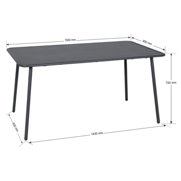 Mocht je de tafel (tijdelijk) niet gebruiken dan is het verstandig om het op te slaan op een beschutte plek of af te dekken met een hoes. Let er bij het afdekken op dat dit niet luchtdicht gebeurt, zodat het meubel kan blijven ademen. Hierdoor is er minder kans op schimmel en blijft de tafel langer mooi. Afmetingen: 150 x 90 x 74,5 cm