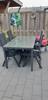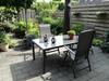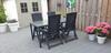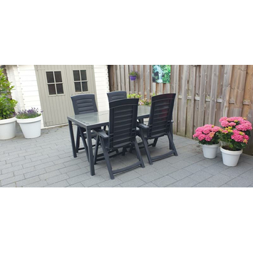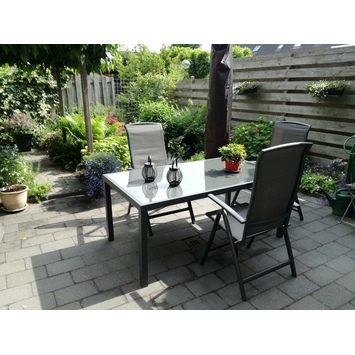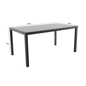 De tuintafel is 160 centimeter lang, 90 centimeter breed en 75 centimeter hoog.