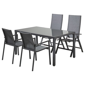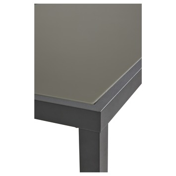 Ben jij op zoek naar een rechthoekige, strakke en moderne eettafel voor in je tuin? Ga dan voor de Tafel Toledo Grijs Aluminium 160x90x75 cm! Het frame van deze buitentafel is gemaakt van aluminium, een sterk materiaal dat licht van gewicht, makkelijk schoon te maken én weerbestendig is. Het tafelblad is van grijs glas en tevens onderhoudsvriendelijk en bestand tegen weer. De tuintafel is overigens verkrijgbaar in meerdere maten. Daarnaast zijn uit de serie Toledo bijpassende stoelen voor aan de tafel verkrijgbaar, waarmee je tuinset er als een geheel uitziet.