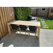 De tuintafel is 210 centimeter lang, 96 centimeter breed en 78 centimeter hoog.