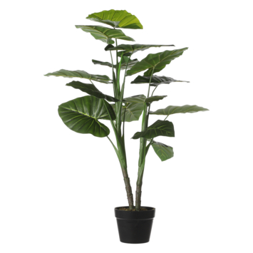 Klaar om zorgeloos te genieten? De kunstplanten zijn niet van echt te onderscheiden, maar hebben geen enkel onderhoud nodig. Deze taro in pot valt op door de grote bladeren op enkele stelen. Het blad is uitgevoerd in verschillende maten en groentinten voor een extra natuurlijk effect. De plant is stevig verankerd in een zwarte kunststof pot, maar moet voor gebruik wel nog in model worden gebracht. Vuistregel: het blad moet je aankijken. Zet hem na het uitvouwen zo neer, of gebruik de kunststof pot als stevige basis voor een sierlijke overpot. Combineer hem met andere kunstbloemen en -planten uit de collectie en breng meer groen in huis.