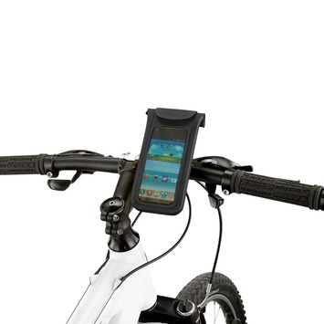 Met deze telefoonhouder bent u vanaf nu ook op de fiets goed bereikbaar. Bovendien kunt u op deze manier de navigatie van uw smartphone gebruiken om uw route te volgen. De telefoonhouder is spatwaterdicht en beschermt uw smartphone tegen regen en vuil. De touchscreen functie van uw telefoon blijft beschikbaar dankzij het TPU scherm van de houder. De telefoonhouder is eenvoudig op het stuur van uw fiets te monteren. Geschikt voor o.a. iPhone, Samsung, HTC.