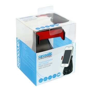 De telefoonhouder zuignap zwart Carcoustic heeft een gepatenteerd zuignapsysteem. U bevestigt de houder in een handomdraai aan de voorruit van uw auto met behulp van deze zuignap. De telefoonhouder zuignap zwart Carcoustic geeft u toegang tot alle poorten en functies van diverse mobiele toestellen en andere media-apparaten met een afmeting tussen 56mm en 88mm. De telefoonhouder heeft een 360° draaibare klem en is leverbaar in hoogglans zwart met rood klemrubber. Zet uw telefoon in de houder en klem deze vast met behulp van 2 sterke veren. De telefoonhouder kan tot 3,5kg dragen. Kortom, wanneer u regelmatig in de auto zit is de telefoonhouder zuignap zwart Carcoustic onmisbaar.