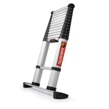 Deze Telesteps Telescoopladder Classico Line 12 Treden is compact op te bergen en toepasbaar voor uitleenlopende werkzaamheden. Wanneer de trap helemaal is ingeschoven heeft deze een lengte van 84 cm waarmee deze telescopische ladder zeer praktisch is om op te bergen. De uitschuiflengte van de ladder bedraagt 3,8 meter. Deze telescopische ladder heeft 12 treden die variabel in te stellen zijn tot een maximale werkhoogte van 5 meter en heeft een comfortabel stavlak. Met een draaggewicht van maximaal 150 kilo en met zijn antisliptreden is deze trap robuust en veilig. De treden vergrendelen zichzelf tijdens het uitschuiven van de ladder en zijn door middel van ontgrendelknoppen weer in elkaar te klappen. Met dit systeem kunnen uw vingers niet tussen de treden komen en kunt u de trap veilig inklappen.