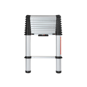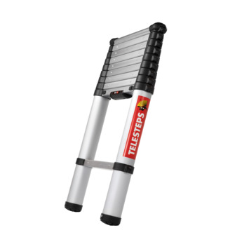 Deze Telesteps Telescoopladder Eco Line 9 Treden is compact op te bergen en toepasbaar voor uitleenlopende werkzaamheden. Wanneer de trap helemaal is ingeschoven heeft deze een lengte van 75 cm waarmee deze telescopische ladder zeer praktisch is om op te bergen. De uitschuiflengte van de ladder bedraagt 3 meter. Deze telescopische ladder heeft 9 treden die variabel in te stellen zijn tot een maximale werkhoogte van 3,8 meter en heeft een comfortabel stavlak. Met een draaggewicht van maximaal 150 kilo en met zijn antisliptreden is deze trap robuust en veilig. De treden vergrendelen zichzelf tijdens het uitschuiven van de ladder en zijn door middel van ontgrendelknoppen weer in elkaar te klappen. Met dit systeem kunnen uw vingers niet tussen de treden komen en kunt u de trap veilig inklappen