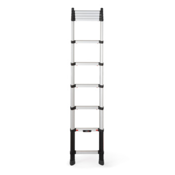 Deze Telesteps Telescoopladder Prime line 10 Treden is compact op te bergen en toepasbaar voor uitleenlopende werkzaamheden. Wanneer de trap helemaal is ingeschoven heeft deze een lengte van 79 cm waarmee deze telescopische ladder zeer praktisch is om op te bergen. De uitschuiflengte van de ladder bedraagt 3 meter. Deze telescopische ladder heeft 10 treden die variabel in te stellen zijn tot een maximale werkhoogte van 3,8 meter en heeft een comfortabel stavlak. Met een draaggewicht van maximaal 150 kilo en met zijn antisliptreden is deze trap robust en veilig. De treden vergrendelen zichzelf tijdens het uitschuiven van de ladder en zijn door middel van ontgrendelknoppen weer in elkaar te klappen. Met dit systeem kunnen uw vingers niet tussen de treden komen en kunt u de trap veilig inklappen.