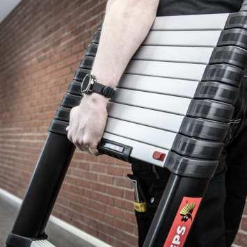 Deze Telesteps Telescoopladder Prime Line 13 Treden is compact op te bergen en toepasbaar voor uitleenlopende werkzaamheden. Wanneer de trap helemaal is ingeschoven heeft deze een lengte van 94 cm waarmee deze telescopische ladder zeer praktisch is om op te bergen. De uitschuiflengte van de ladder bedraagt 4,1 meter. Deze telescopische ladder heeft 13 treden die variabel in te stellen zijn tot een maximale werkhoogte van 4,9 meter en heeft een comfortabel stavlak. Met een draaggewicht van maximaal 150 kilo en met zijn antisliptreden is deze trap robuust en veilig. De treden vergrendelen zichzelf tijdens het uitschuiven van de ladder en zijn door middel van ontgrendelknoppen weer in elkaar te klappen. Met dit systeem kunnen uw vingers niet tussen de treden komen en kunt u de trap veilig inklappen.