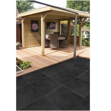 De Tuintegel Keramisch Solid Stone Natural Black 60x60x2cm is de nieuwste trend in sierbestrating. De tegel heeft de uitstraling van natuursteen en bezit daarnaast de voordelen van keramiek. Negatieve invloeden van bijvoorbeeld vet, mosterd, rode wijn en zuurhoudende middelen krijgen op deze tegels geen kans. Vlekken verwijdert u bovendien eenvoudig met behulp van een hogedrukreiniger. Zelfs tegen vorst en krassen is de Tuintegel Keramisch Solid Stone Natural Black 60x60x2cm bestand. De tegel met zwarte kleur is 100% slijt- en kleurvast, heeft een antislipwerking en is zout-, mos- en aanslagbestendig. U legt de tegel op een waterdoorlatende ondergrond met drainagemortel, vervolgens smeert u de onderkant van de tegel in met hechtmortel zodat de tegel goed hecht aan de drainagemortel. Voor een harde en onderhoudsvrije voeg gebruikt u uiteindelijk voegmortel in antracietkleur. Voor een duurzaam terras of tuinpad is de Tuintegel Keramisch Solid Stone Natural Black 60x60x2cm uitermate geschikte sierbestrating.