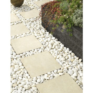 Decor terrastegel keramisch solid stone natural ivory 60x60x2cm is de nieuwste trend in sierbestrating. De tegel heeft de uitstraling van natuursteen en bezit daarnaast de voordelen van keramiek. Negatieve invloeden, zoals vet, mosterd, rode wijn en zuurhoudende middelen, krijgen op deze tegels geen kans. Vlekken verwijdert u bovendien eenvoudig met behulp van een hogedrukreiniger. Zelfs tegen vorst en krassen is de tuintegel met een afmeting van 60x60x2cm bestand. U legt de tegel op een waterdoorlatende ondergrond met drainagemortel, vervolgens smeert u de onderkant van de tegel in met hechtmortel zodat de tegel goed hecht aan de drainagemortel. Voor een harde en onderhoudsvrije voeg gebruikt u uiteindelijk voegmortel in antracietkleur. Voor een duurzaam terras of tuinpad is de tuintegel uitermate geschikt.
