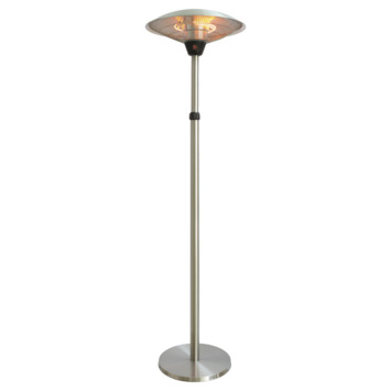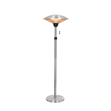 De Eurom PD2100 XXL is een elegante elektrische terrasverwarmer. Door de verstelbare hoogte van max. 225 cm heeft de PD2100 XXL een groot stralingsoppervlak en zorgt voor fijne warmte op frisse avonden. De Halogeen lamp is in te schakelen op 900 – 1200 – 2100 Watt en heeft is spatwaterdicht (IP44).