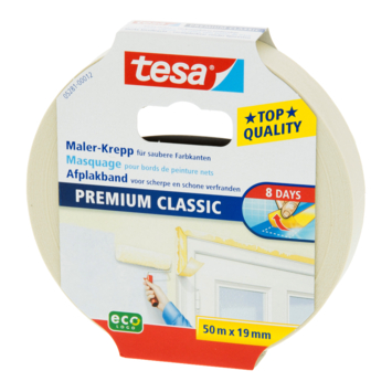 Tesa afplaktape Premium classic 19 mm 50 meter geel