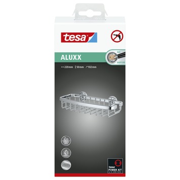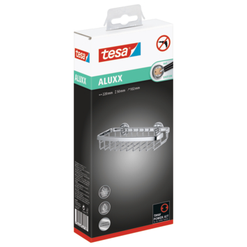 Dit praktische tesa® Aluxx doucherek biedt een ideale oplossing voor het opbergen van je shampoo en douchegel. Dankzij het hoogglans verchroomde aluminium is het niet alleen stevig, maar ook een stijlvolle toevoeging aan je doucheruimte. Installeren doe je simpel met de innovatieve tesa® Power.Kit technologie: plak de adapters op de muur, vul ze met de speciale lijm en laat het 12 uur uitharden. Vervolgens schroef je het rekje vast op de adapters. Geen gedoe met boren en schroeven! Wanneer je het doucherek wilt verplaatsen, gebruik je gewoon de bijgeleverde adapter zonder dat er lijmresten achterblijven. Dit doucherek is geschikt voor diverse ondergronden zoals tegels, metaal en hout, maar niet voor behang of stucwerk. Zo blijft je doucheruimte altijd netjes en georganiseerd.