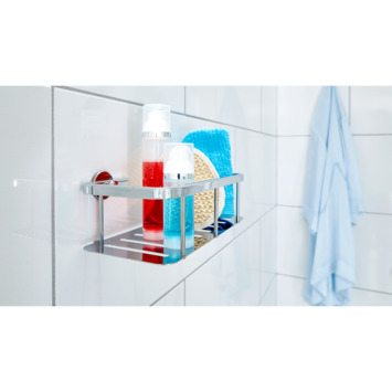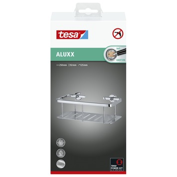 Met het tesa Aluxx doucherek bewaar je jouw douchegel en shampoo op één plek zonder boren. De sterke zelfklevende montage-lijm houdt het rek stevig vast, ook in een vochtige badkamer. Na 12 uur drogen is het klaar voor gebruik. Je plaatst het rek waar jij het handig vindt, zonder gaten in je tegels. Dankzij de bodemplaat blijven flessen rechtop staan en valt er niets om. Het hoogglans verchroomde aluminium geeft een nette uitstraling en is makkelijk schoon te houden. De afgeronde hoeken en cirkelvormige muurplaat zorgen voor een strak geheel. Verwijderen kan zonder resten achter te laten. Wil je het rek ergens anders? Gebruik de adapter BK43-2 en plak het gewoon opnieuw.