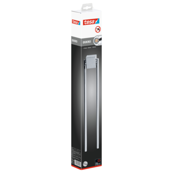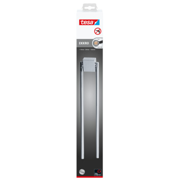 Met de tesa® Ekkro handdoekhouder hang je handdoeken netjes op zonder boren. De houder heeft twee armen en een glanzende, verchroomde afwerking die goed bestand is tegen vocht. Door de tesa® Power.Kit technologie bevestig je de houder in een paar eenvoudige stappen. Plak de adapters op de muur, vul ze met de meegeleverde lijm en laat dit uitharden. Daarna schroef je de houder vast. Alle benodigdheden vind je in de doos. De houder blijft stevig zitten op oppervlakken zoals tegels, glas en hout. Behang of stucwerk is niet geschikt. Verwijderen gaat snel en zonder lijmresten. Zo kun je de houder opnieuw monteren met een nieuwe adapter.
