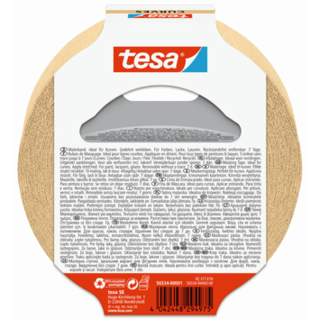 Tesa flexibele afplakband voor rondingen 38 mm x 25 m is ontworpen voor het afplakken van hoeken en bijna haakse vormen binnen. De tape heeft een papieren drager en een acrylkleeflaag. Hij is geschikt voor gladde en licht oneffen ondergronden en UV-bestendig. Je kunt de tape gemakkelijk met de hand afscheuren en tot zeven dagen na het aanbrengen verwijderen zonder lijmresten achter te laten.