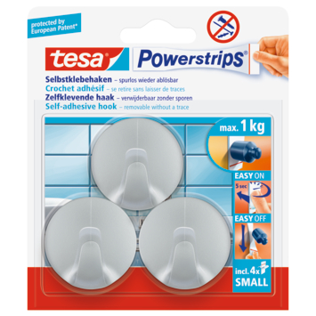Tesa Haak Powerstrip Rond Kunststof Chroom - 3 Stuks