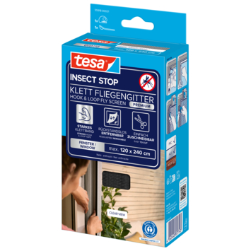 tesa® Insect Stop COMFORT Klittenband voor ramen biedt effectieve bescherming tegen insecten met klittenband waarmee je je ramen open kunt houden zonder dat insecten binnen kunnen komen. Het is verkrijgbaar in twee kleuren en twee maten, geschikt voor de meeste kozijnen. Dankzij het easy-on- en easy-off-systeem is het snel en eenvoudig te plaatsen en verwijderen. Gebruik de meegeleverde klittenbandtape om het op het raamkozijn te plakken en de druktool om het gaas er stevig tegenaan te drukken. Om het gaas weer te verwijderen, trek je het er gewoon vanaf.
