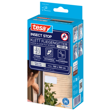 tesa® Insect Stop COMFORT Klittenband voor ramen biedt effectieve bescherming tegen insecten met klittenband waarmee je je ramen open kunt houden zonder dat insecten binnen kunnen komen. Het is verkrijgbaar in twee kleuren en twee maten, geschikt voor de meeste kozijnen. Dankzij het easy-on- en easy-off-systeem is het snel en eenvoudig te plaatsen en verwijderen. Gebruik de meegeleverde klittenbandtape om het op het raamkozijn te plakken en de druktool om het gaas er stevig tegenaan te drukken. Om het gaas weer te verwijderen, trek je het er gewoon vanaf.
