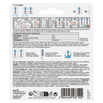Tesa klevende spijker canvas voor behang en pleisterwerk verstelbaar wit 2 kg 2 stuks