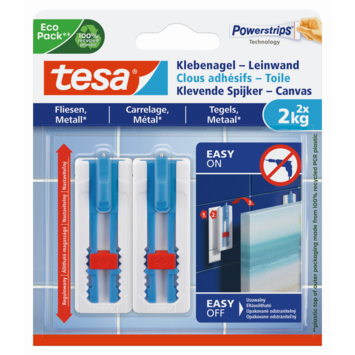 Tesa klevende spijker canvas voor tegels en metaal verstelbaar wit 2 kg 2 stuks