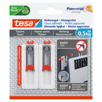 Tesa klevende spijker kleine apparaten voor behang en pleisterwerk verstelbaar wit 0,5 kg 2 stuks