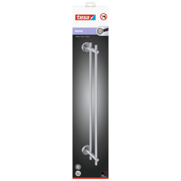 De dubbele handdoekhouder van tesa® Moon geeft je direct extra ruimte voor twee handdoeken, zonder dat je hoeft te boren. Ideaal voor in de badkamer of het toilet, waar je snel en netjes je handdoeken wilt ophangen. De houder heeft een roestvrijstalen afwerking met een speciale laag tegen vingerafdrukken, zodat hij er altijd schoon uitziet. Je plakt de adapters eenvoudig op de muur, vult ze met de lijm uit de verpakking en laat het 12 uur uitharden. Daarna schroef je de houder stevig vast. Verplaatsen? Dat kan, want je verwijdert hem zonder lijmresten en bevestigt hem opnieuw met een losse adapterset. Geschikt voor tegels, metaal en glas, maar niet voor behang of stucwerk.