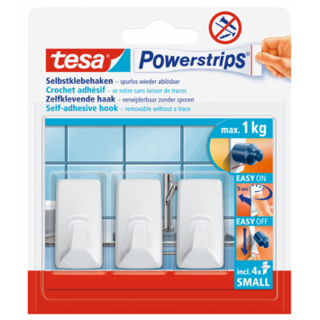 De Tesa Powerstrip haken zijn gemaakt van een hoge kwaliteit witte kunststof. U kunt deze haken monteren zonder te boren of schroeven dankzij de Tesa Powerstrips technologie. Hiermee plakt u ze eenvoudig op een gladde ondergrond. De haken hebben een draagkracht van 1kg per stuk. U kunt de haken gebruiken op tegels, glas, hout, plastic en andere gladde ondergronden (ze zijn niet geschikt voor gebruik op geschuimd en poreus materiaal). Dankzij de Powerstrips van Tesa kunt u de haken opnieuw gebruiken. U verwijdert ze zonder een spoor achter laten op de ondergrond. De haken hebben een tijdloos ontwerp. De Tesa Powerstrip haken S rechthoeking wit worden per 3 stuks verkocht.