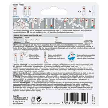 De verstelbare klevende spijker van Tesa is ontworpen voor het ophangen van lichte voorwerpen tot 1 kilogram. Dankzij de verstelbare hoogte kun je fotolijstjes eenvoudig recht en op de gewenste positie plaatsen. De spijker is geschikt voor gebruik op oneffen of gevoelige oppervlakken, zoals behang en pleisterwerk. Hierdoor kun je decoraties ophangen zonder te hoeven boren of schade te veroorzaken aan de muur. De klevende spijker combineert praktische toepassing met een nette afwerking en is ideaal voor wie snel en netjes iets wil ophangen in huis.