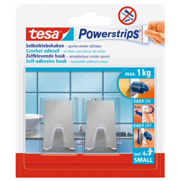 Onze zelfklevende kleine Powerstrips® rechthoekige metalen haken worden op wanden gemonteerd zonder gebruik te maken van een boor en veroorzaken dus geen schade aan het oppervlak. De kleefhaken dienen voor het ophangen van gewichten tot 1 kg. Je kunt de metalen haak thuis of op kantoor gebruiken, bv. om badhanddoeken, kleding, ovenwanten of sleutels aan op te hangen.