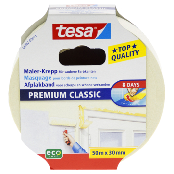 Tesa Premium Classic afplaktape 30 mm 50 meter geel
