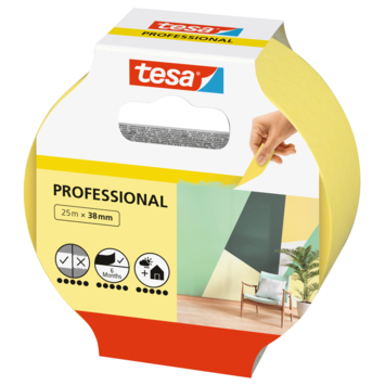 Tesa Professional Indoor afplakband geel 25 m x 38 mm