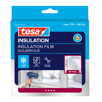 Eenvoudig en voordelig besparen is mogelijk door de Tesa Thermo Cover 2.55 m². De door tesa ontwikkelde transparante niet-klevende isolatie voor ramen met enkelglas en biedt een isolerend effect dat als het ware een tweede laag glas kan vervangen. Eenvoudig en onzichtbaar aan te brengen* met de bijgeleverde transparante tape. Met een föhn kan de folie strak tegen het raam geplaatst worden. Bovendien vermindert deze raamisolatie vervelende condensatie van de ramen. Afmetingen: 1,7 meter x 1,5 meter. Tevens verkrijgbaar bij Gamma in de afmeting 4 meter bij 1,5 meter.