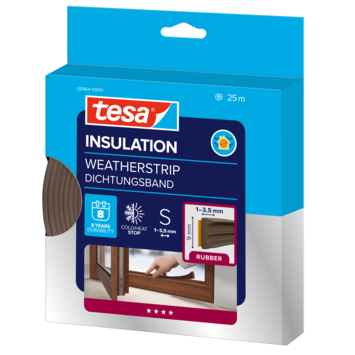Ga tocht in huis tegen met tochtband van Tesa op ramen, binnen- en buitendeuren. Dit E-profiel is 9 mm breed. Het dicht kieren van 1 tot 3,5 mm. Met een lengte van 25 meter kan je met één verpakking meerdere ramen netjes afdichten. Knip de strip gemakkelijk met een schaar op maat. Door de zelfklevende strip op de achterzijde van het profiel is het simpel te bevestigen. Omdat de tochtband is gemaakt van EPDM-rubber zal deze minimaal 8 jaar meegaan. Zo zit jij er deze winter dus weer comfortabel bij.