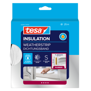 Ga tocht in huis tegen met tochtband van Tesa op ramen, binnen- en buitendeuren. Dit E-profiel is 9 mm breed. Het dicht kieren van 1 tot 3,5 mm. Met een lengte van 25 meter kan je met één verpakking meerdere ramen netjes afdichten. Knip de strip gemakkelijk met een schaar op maat. Door de zelfklevende strip op de achterzijde van het profiel is het simpel te bevestigen. Omdat de tochtband is gemaakt van EPDM-rubber zal deze minimaal 8 jaar meegaan. Zo zit jij er deze winter dus weer comfortabel bij.