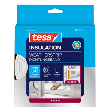 Ga tocht in huis tegen met tochtband van Tesa op ramen, binnen- en buitendeuren. Dit P-profiel is 9 mm breed. Het dicht kieren van 2 tot 5 mm. Met een lengte van 25 meter kan je met één verpakking meerdere ramen netjes afdichten. Knip de strip gemakkelijk met een schaar op maat. Door de zelfklevende strip op de achterzijde van het profiel is het simpel te bevestigen. Omdat de tochtband is gemaakt van EPDM-rubber zal deze minimaal 8 jaar meegaan. Zo zit jij er deze winter dus weer comfortabel bij.