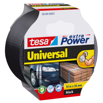 De Tesa Universal Extra Power reparatietape zwart 50 mm x 10 m is geschikt voor klussen binnen en buiten op effen en oneffen ondergronden. De tape heeft een PET-drager en biedt UV-bestendigheid. De tape is weerbestendig en makkelijk met de hand af te scheuren zonder schaar. Deze tape is handig voor herstellen bevestigen en bundelen.