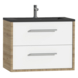 Het Tiger Boston badkamermeubel is krachtig en elegant tegelijk en de mooie ronde greep ligt aangenaam in de hand. De 2 lades bieden voldoende ruimte om alle badkamerartikelen overzichtelijk in op te bergen. Daarnaast zijn ze uitgerust met hoogwaardige 'soft close' geleiders waardoor ze geruisloos sluiten. De warme houttint geeft een sfeervol karakter aan het meubel. Daarnaast krijgt het meubel, door de voelbare houtnerf, een mooie natuurlijke uitstraling. De strakke, mat zwarte polybeton wastafel met imitatie natuursteen look maakt deze set compleet.