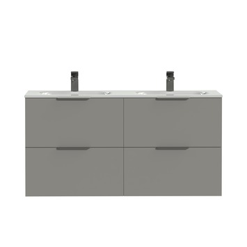 Dit badkamermeubel is onderdeel van de Tiger Studio serie. Dit is een serie met enorm veel varianten met een kleine aanpassing. Denk daarbij aan afmetingen, kleur, vorm, etc. Deze variant heeft een mat-grijze onderkast met 4 lades, met profielgrepen en een softclose ladesysteem. Dat wil zeggen dat de lades altijd zachtjes sluiten. Dit voorkomt schade aan het houtwerk wanneer je per ongeluk de lades te hard dicht doet. De lades bieden voldoende ruimte om handdoeken en andere sanitaire spullen in op te bergen. De onderkast, met een breedte van 120 cm, heeft 2 hoogglans witte keramische wastafels. Hoewel deze op de afbeelding misschien met kraan te zien zijn, wordt dit badmeubel exclusief kraan en sifon verkocht. Gelukkig heeft GAMMA ook een breed assortiment met kranen. Dankzij de duidelijke handleiding en meegeleverd bevestigingsmateriaal kun je eenvoudig zelf de montage uitvoeren. Tot slot zit er 3 jaar garantie op alle badmeubelen binnen de Tiger Studio serie. Mocht dit Tiger Badkamermeubel Studio 120 cm Mat Grijs met Dubbele Keramische Wastafel Hoogglans Wit en Profielgrepen het net niet helemaal zijn, kijk dan vooral nog even verder in de GAMMA webshop. Er is vast en zeker een passende maat en kleurencombinatie te vinden!