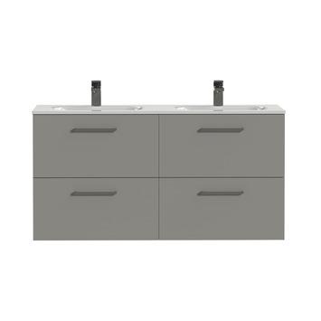 Dit badkamermeubel is onderdeel van de Tiger Studio serie. Dit is een serie met enorm veel varianten met een kleine aanpassing. Denk daarbij aan afmetingen, kleur, vorm, etc. Deze variant heeft een mat-grijze onderkast met 4 lades, met vierkante grepen en een softclose ladesysteem. Dat wil zeggen dat de lades altijd zachtjes sluiten. Dit voorkomt schade aan het houtwerk wanneer je per ongeluk de lades te hard dicht doet. De lades bieden voldoende ruimte om handdoeken en andere sanitaire spullen in op te bergen. De onderkast, met een breedte van 120 cm, heeft 2 hoogglans witte wastafels van polybeton. Hoewel deze op de afbeelding misschien met kraan te zien zijn, wordt dit badmeubel exclusief kraan en sifon verkocht. Gelukkig heeft GAMMA ook een breed assortiment met kranen. Dankzij de duidelijke handleiding en meegeleverd bevestigingsmateriaal kun je eenvoudig zelf de montage uitvoeren. Tot slot zit er 3 jaar garantie op alle badmeubelen binnen de Tiger Studio serie. Mocht dit Tiger Badkamermeubel Studio 120 cm Mat Grijs met Dubbele Polybeton Wastafel Hoogglans Wit en Vierkante Grepen het net niet helemaal zijn, kijk dan vooral nog even verder in de GAMMA webshop. Er is vast en zeker een passende maat en kleurencombinatie te vinden!