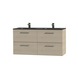 Door het strakke en tijdloze design past dit Tiger Studio badkamermeubel in iedere badkamer. Deze wastafelonderkast heeft 2 ruime lades om alle badkamerspullen overzichtelijk in op te bergen. De lades zijn uitgerust met hoogwaardige 'soft close' geleiders waardoor ze geruisloos sluiten. De warme houttint geeft een sfeervol karakter aan het meubel. Daarnaast krijgt het meubel, door de voelbare houtnerf, een mooie natuurlijke uitstraling. De mooie, zwart matte polybeton wastafel met ovale waskommen en rvs grepen maken deze set compleet.