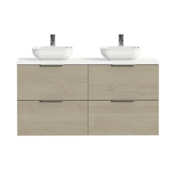Dit badkamermeubel is onderdeel van de Tiger Studio serie. Dit is een serie met enorm veel varianten met een kleine aanpassing. Denk daarbij aan afmetingen, kleur, vorm, etc. Deze variant heeft een naturel eiken onderkast met 4 lades, met profielgrepen en een softclose ladesysteem. Dat wil zeggen dat de lades altijd zachtjes sluiten. Dit voorkomt schade aan het houtwerk wanneer je per ongeluk de lades te hard dicht doet. De lades bieden voldoende ruimte om handdoeken en andere sanitaire spullen in op te bergen. De onderkast, met een breedte van 120 cm, heeft 2 hoogglans witte keramische waskommen. Hoewel deze op de afbeelding misschien met kraan te zien zijn, wordt dit badmeubel exclusief kraan en sifon verkocht. Gelukkig heeft GAMMA ook een breed assortiment met kranen. Dankzij de duidelijke handleiding en meegeleverd bevestigingsmateriaal kun je eenvoudig zelf de montage uitvoeren. Tot slot zit er 3 jaar garantie op alle badmeubelen binnen de Tiger Studio serie. Mocht dit Tiger Badkamermeubel Studio 120 cm Naturel Eiken met Dubbele Keramische Waskom Hoogglans Wit en Profielgrepenn het net niet helemaal zijn, kijk dan vooral nog even verder in de GAMMA webshop. Er is vast en zeker een passende maat en kleurencombinatie te vinden!