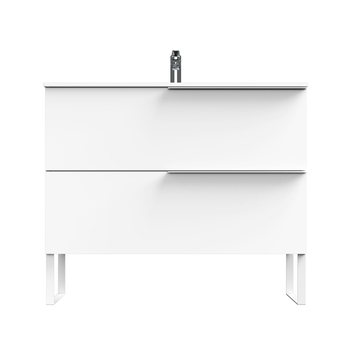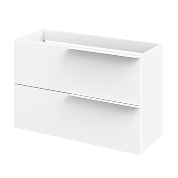 Haal het maximale uit je badkamer met deze wastafelonderkast in Scandinavische stijl. Het strakke design is simpel maar elegant. Deze slimme kast heeft een diepte van slechts 39 cm. Ideaal voor de kleinere badkamer. Dankzij haar effen lijnen laat hij de ruimte groter ogen. De ruime lades zijn uitgerust met Hettich softclosegeleiders en de binnenzijde heeft een trendy afwerking in textiel. De matwitte grepen zijn perfect in het geheel verwerkt, net als de twee speelse sierpoten. De luxueuse afwerking in hoogglans wit zorgt voor een frisse en ruimtelijke look.