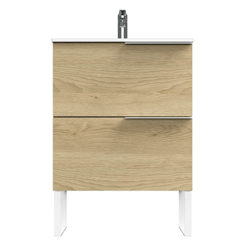 Strakke lijnen gecombineerd met natuurlijke materialen en een slim design voor een ruimtelijk gevoel. Dit vat de serie Tiger Pocket perfect samen. Het strakke ontwerp is simpel maar elegant en brengt meer comfort naar je badkamer. Deze kast heeft een diepte van slechts 39 cm. Ideaal voor de kleinere badkamer. De ruime lades zijn uitgerust met Hettich softclosegeleiders en de binnenzijde heeft een trendy afwerking in textiel. De matwitte grepen zijn perfect in het geheel verwerkt, net als de twee speelse sierpoten. De afwerking in naturel eik zorgt voor een stijlvolle Scandinavische look.