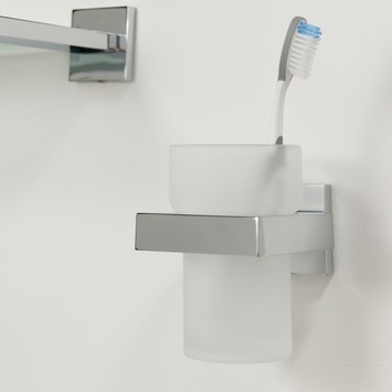 De Tiger Bekerhouder Items Hangend met Beker Chroom van de accessoire serie Items is uitgevoerd in chroom gecombineerd met mat glas, en is ook verkrijgbaar in RVS. Dit product kan aan de wand worden geschroefd, maar kan ook met behulp van Tigerfix 1 op een gladde en harde ondergrond geplakt worden. Je hoeft dus niet te boren. (Tigerfix is los verkrijgbaar). Er zijn van deze serie diverse sanitair accessoires verkrijgbaar. Dit product maakt deel uit van het Items totaalconcept, dat verder bestaat uit kranen, badmeubelen, douche accessoires en douchecabines, alles in de Items stijl.