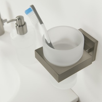 De Tiger Bekerhouder Items Hangend met Beker RVS van de accessoire serie Items is uitgevoerd in RVS gecombineerd met mat glas, en is ook verkrijgbaar in chroom. Dit product kan aan de wand worden geschroefd, maar kan ook met behulp van Tigerfix 1 op een gladde en harde ondergrond geplakt worden. Je hoeft dus niet te boren. (Tigerfix is los verkrijgbaar). Er zijn van deze serie diverse sanitair accessoires verkrijgbaar. Dit product maakt deel uit van het Items totaalconcept, dat verder bestaat uit kranen, badmeubelen, douche accessoires en douchecabines, alles in de Items stijl.