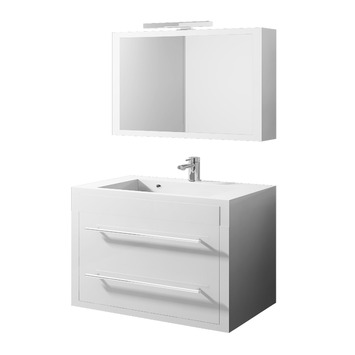 Deze Tiger Boston badmeubelset met laden chroom wit 70cm bestaat uit een onderkast uitgevoerd in wit hoogglans. De kast heeft twee deuren met soft close scharnieren zodat deze geruisloos sluiten, twee grepen in chroom, een wastafel in wit polybeton en een witte spiegelkast van 70cm en chroomkleurige details. De bovenste lade heeft geen uitsparing voor het sifon en is daardoor helemaal te gebruiken. Dat betekent wel dat u een ruimtebesparend sifon nodig hebt. De badmeubelset maakt deel uit van de Boston-serie, bestaande uit kranen, badkamer- en doucheaccessoires en douchecabines. Bij GAMMA vindt u diverse producten uit het Boston-concept om zo uw badkamer in één stijl te completeren. Afmetingen: 175cm hoog, 70cm breed en 45cm diep.