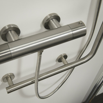De Tiger doucheglijstang (excl. de los verkrijgbaar rainhanddouche+slang) van de accessoire serie Boston Comfort & Safety is uitgevoerd in geborsteld RVS, en is ook verkrijgbaar in glanzend RVS. Desgewenst is er een antislip grip voor deze greep los verkrijgbaar. Ook mogelijk met greep links. Dit artikel is TUV gecertificeerd. Dit product kan uitsluitend worden bevestigd met de meegeleverde schroeven. Er zijn van deze serie diverse sanitair accessoires verkrijgbaar, voor meer comfort en veiligheid in de badkamer en toilet, geheel in de bekende Boston stijl.