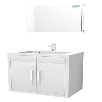 Deze Tiger Boston staande badmeubelset hoogglans wit 70cm bestaat uit een onderkast uitgevoerd in wit hoogglans. De kast heeft twee deuren met soft close scharnieren zodat deze geruisloos sluiten, twee grepen in roestvrijstaal, een wastafel in wit polybeton en een spiegel van 73 bij 53cm en roestvrijstalen ophangbeugels. In de spiegel zit een digitaal scherm waar u datum, tijd en temperatuur in af kunt lezen. De bovenste lade heeft geen uitsparing voor het sifon en is daardoor helemaal te gebruiken. Dat betekent wel dat u een ruimtebesparend sifon nodig hebt. De badmeubelset maakt deel uit van de Boston-serie, bestaande uit kranen, badkamer- en doucheaccessoires en douchecabines. Bij GAMMA vindt u diverse producten uit het Boston-concept om zo uw badkamer in één stijl te completeren. Afmetingen: 175cm hoog, 70cm breed en 45cm diep.