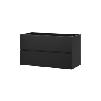 Deze wastafelonderkast van 100 cm biedt extra ruimte en gebruiksgemak. Ideaal wanneer je de badkamer met meerdere personen deelt. De matte zwarte afwerking zorgt voor een rustige basis en combineert makkelijk met diverse wastafels en wandkleuren. Zo creëer je een samenhangend en strak geheel.